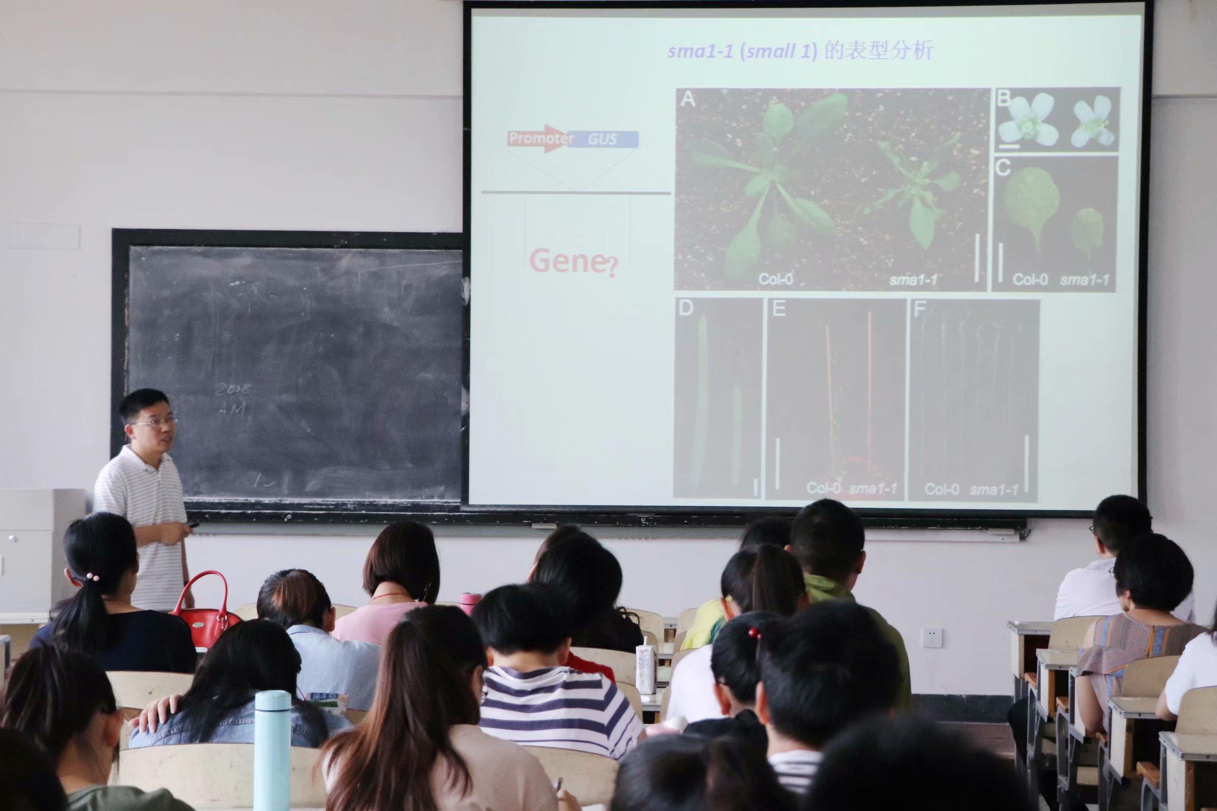 首先,李胜军教授简要介绍了自己的研究经历。接着李胜军教授着重介绍了植物microRNA在基因精细调控中的作用;植物microRNA参与调控器官的形态建成、生长发育、种子大小和生物产量、以及抵御外界生物(如病、虫等)和非生物(如干旱、温度、盐碱、贫瘠等)胁迫;利用植物microRNA改善农作物产量品质和环境适应性的研究;调控microRNA合成的分子机制研究等内容最后李胜军教授展示了研究成果,报告层层深入,报告现场学术氛围浓厚。