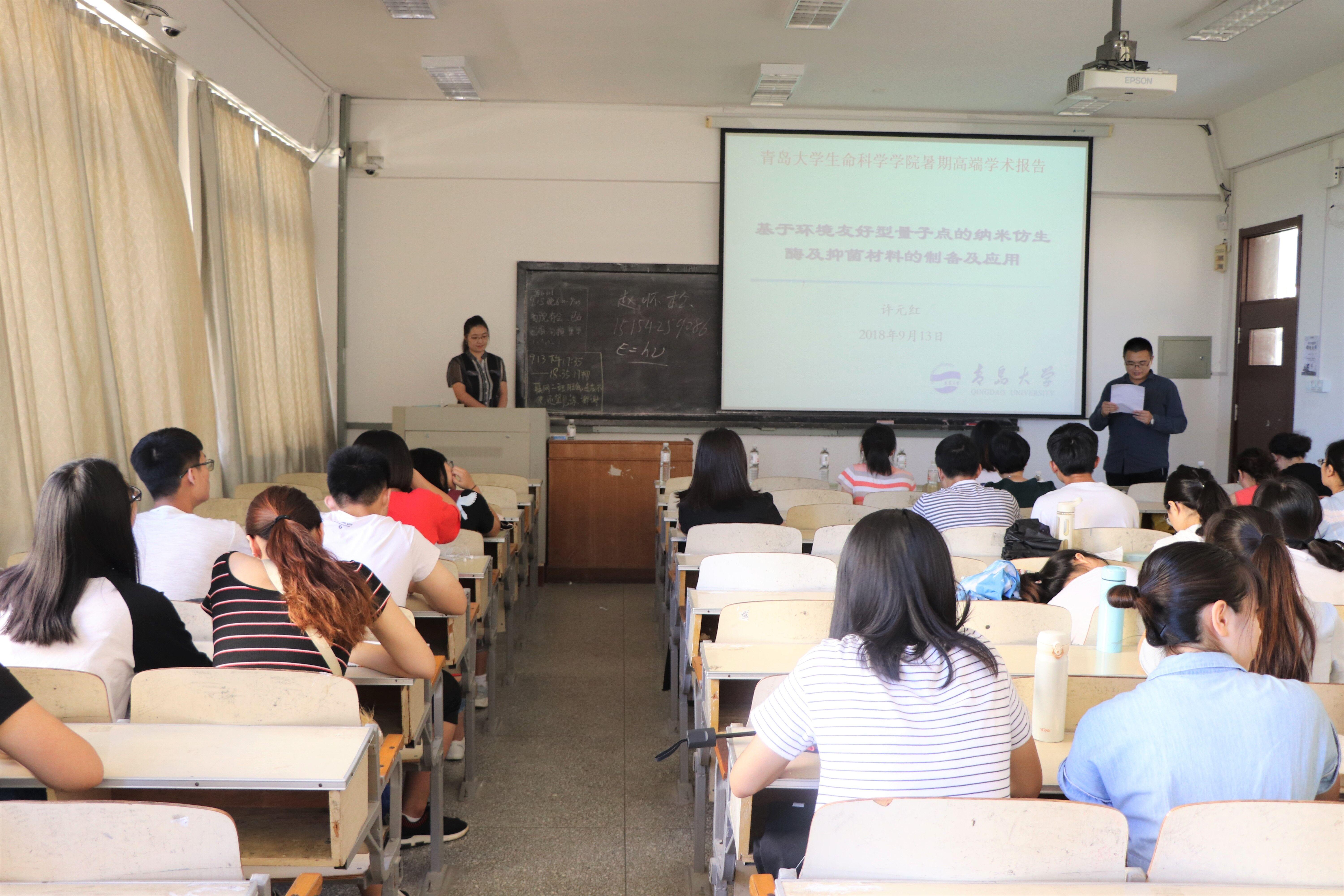 9月13日上午,Beat365中文官方网站特聘教授、Beat365中文官方网站博士生导师许元红教授在博知301教室作了题为《基于环境友好型量子点的纳米仿生酶及抑菌材料的制备及应用》的学术报告。这是Beat365中文官方网站夏季学期高端学术报告的第9场,报告会由学院生物技术系副主任常诚主持,学院相关专业师生共计60余人参加了本次报告会。