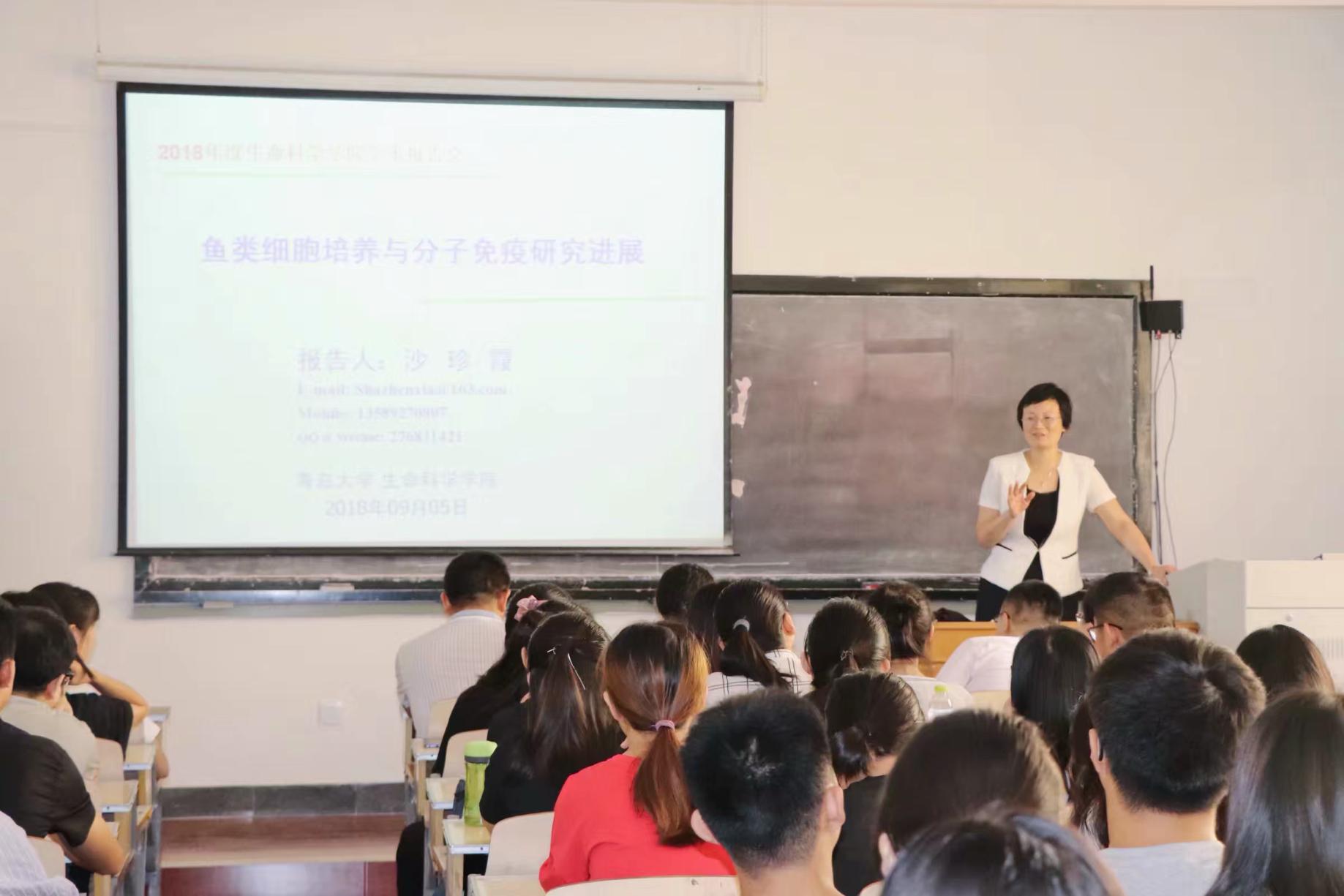 9月5号,Beat365中文官方网站特聘教授、Beat365中文官方网站博士生导师沙珍霞老师在博知310教室作了题为《鱼类细胞培养与分子免疫》的学术报告。这是学院夏季学期高端学术报告的第2场,报告会由学院生物技术系常诚副主任主持,学院相关专业师生共计80余人参加了报告会。