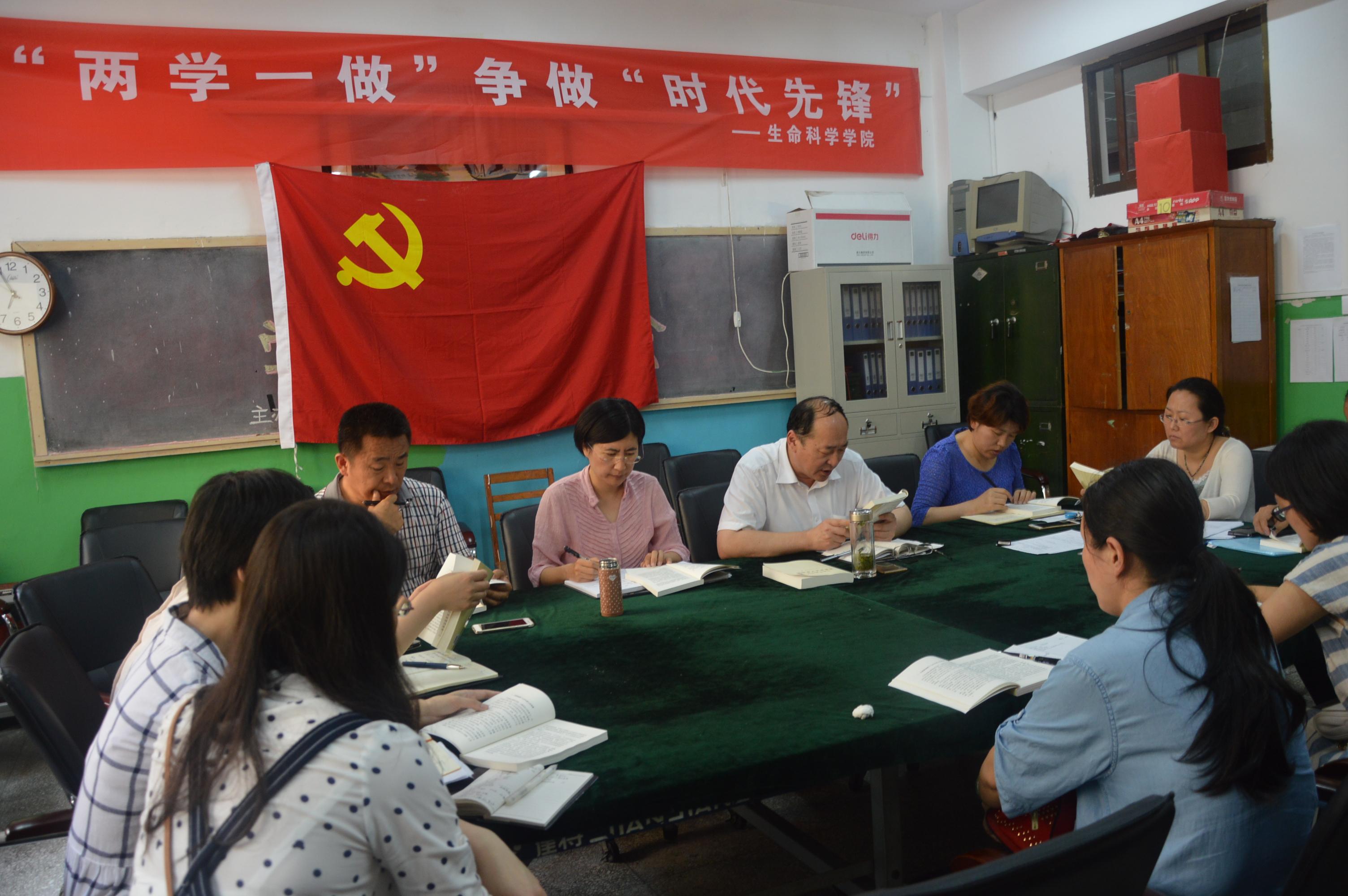 学院党委书记薛冰首先带领大家学习了《习近平总书记系列重要讲话读本》中《关于实现中华民族伟大复兴的中国梦》章节。他建议党员同志把实现“中国梦”与学校、学院的事业发展,与个人的成长结合起来,谋划学院前景,激发内在动力,汇聚正能量。党委副书记贾依娜通报并介绍了“生科院党员之家”微信群的建立、使用情况,建议大家有效利用新媒体平台,提高自学效果。