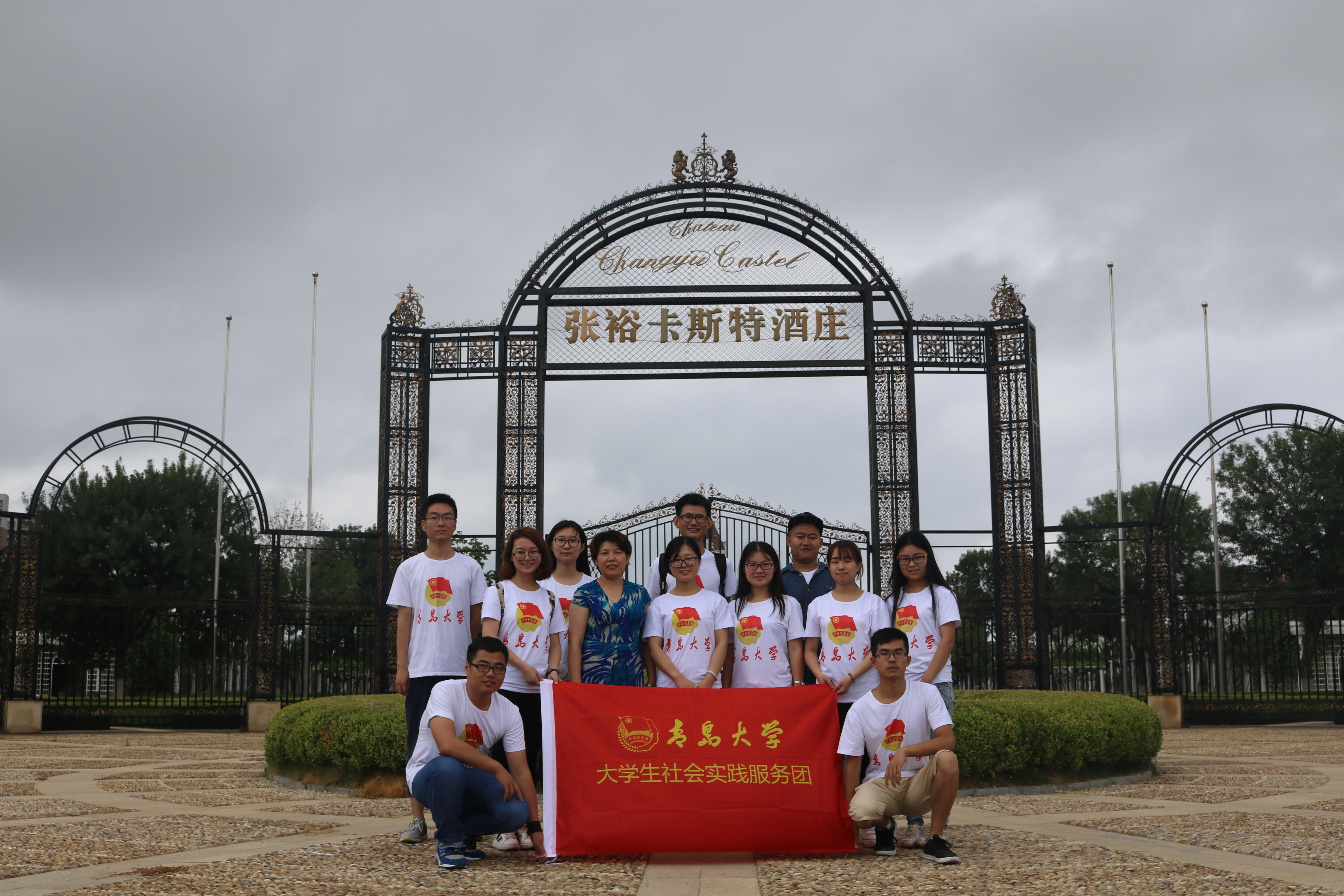 7月16日,Beat365中文官方网站暑期“三下乡”活动团队在教工党员涂正顺副教授,学生党支部书记、团委书记兼学工办主任孔令娟老师的带领下,到烟台张裕葡萄酒集团进行社会实践活动。