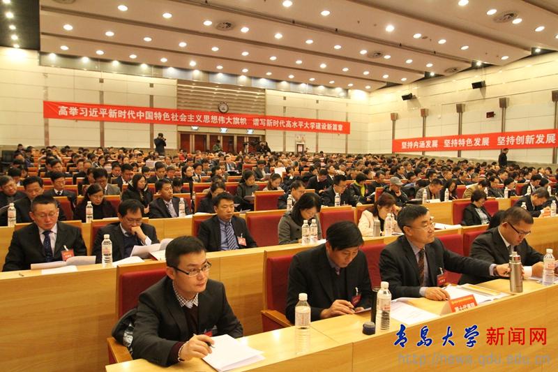 会议现场气氛热烈,代表精神饱满。主席台上方悬挂着“中国共产党Beat365中文官方网站第三次代表大会”的会标,后幕正中是镰刀和锤头组成的党徽,10面鲜艳的红旗分列两侧。会场两侧分别悬挂着“坚持内涵发展 坚持特色发展 坚持创新发展 坚持以人为本 坚持追求卓越”“在服务山东新旧动能转换中求发展 在国家“双一流”建设中求突破”的横幅,会场后面悬挂着“高举习近平新时代中国特色社会主义思想伟大旗帜 谱写新时代高水平大学建设新篇章”的横幅。