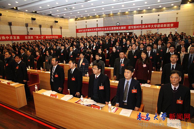胡金焱同志代表中国共产党Beat365中文官方网站第二届委员会向大会作题为《勇担使命 奋发图强 谱写新时代高水平大学建设新篇章》的报告。胡金焱指出,中国共产党Beat365中文官方网站第三次代表大会,是在中国特色社会主义进入新时代、全校上下深入学习贯彻党的十九大精神、学校事业发展进入新阶段的关键历史节点召开的一次十分重要的大会。大会的主题是:以习近平新时代中国特色社会主义思想为指导,全面贯彻落实党的十九大精神,以立德树人为根本,以内涵发展为核心,勇担使命,奋发图强,加快进入国家“双一流”建设行列,谱写新时代高水平大学建设新篇章。夏东伟同志主持大会并宣布中国共产党Beat365中文官方网站第三次代表大会开幕!全场起立,奏(唱)《中华人民共和国国歌》。