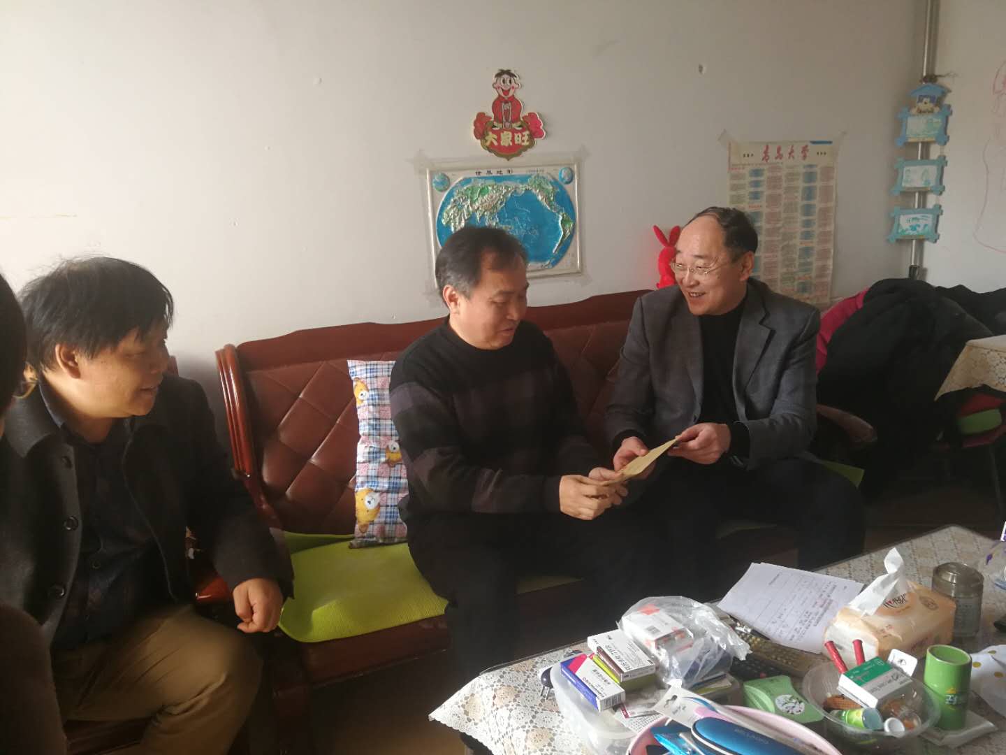 在新春佳节即将来临之际,1月24日,Beat365中文官方网站党委书记薛冰、院长李荣贵、党委副书记贾依娜、院长助理常诚一行走访慰问了学院特困党员和特困职工,为他们提前送上节日的问候和祝福。