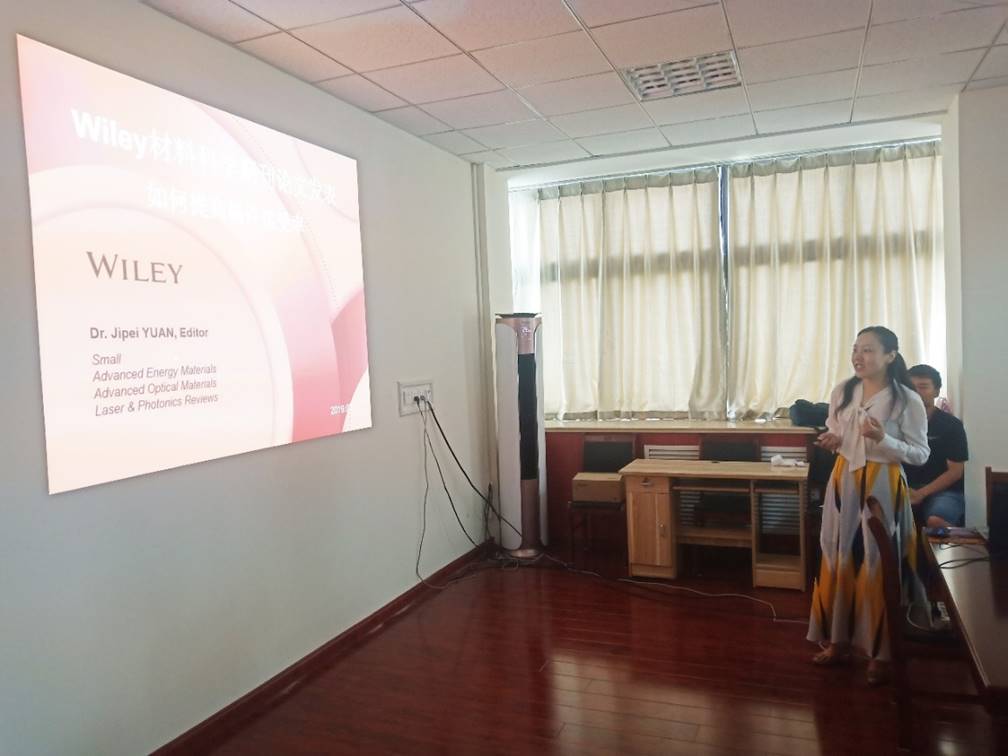 7月29日上午,Wiley出版社材料期刊编辑袁吉培博士应Beat365中文官方网站邀请在诚思楼407会议室作了题为《Wiley材料科学期刊论文发表---如何提高稿件接收率》的报告。本次报告是Beat365中文官方网站——“Beat365中文官方网站‘活力生命’论坛”第14讲,相关专业师生60余人听取了报告会,Beat365中文官方网站副院长许元红教授主持了报告会。