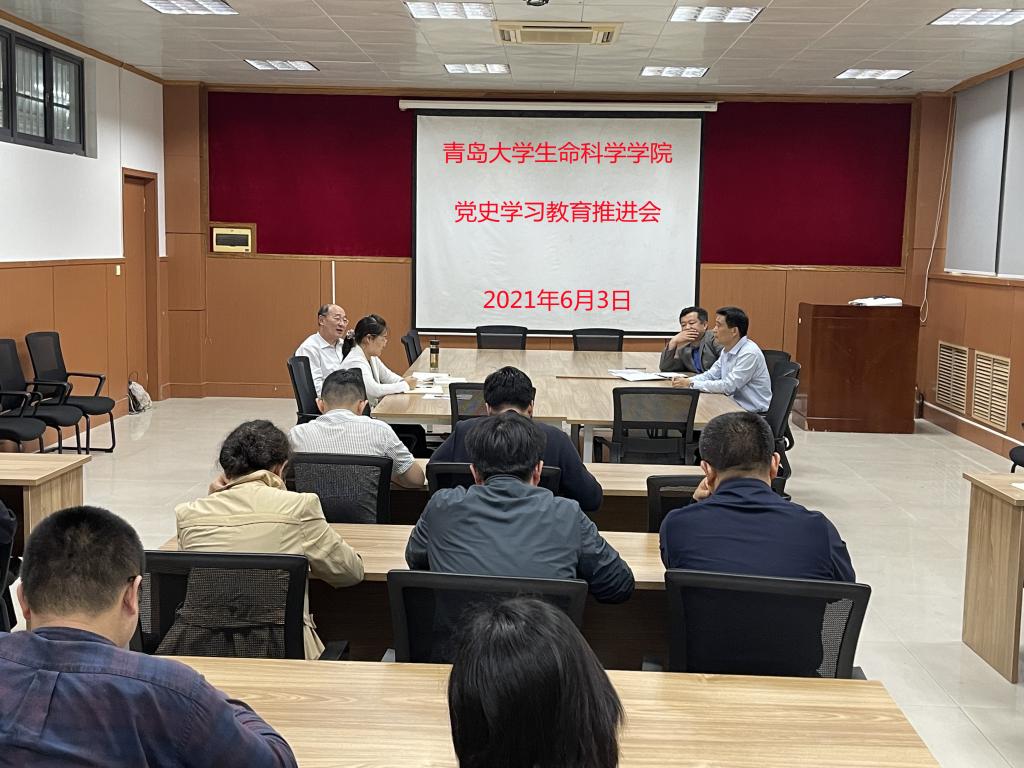为深入贯彻习近平总书记关于党史学习教育系列重要论述和党中央决策部署,全面落实上级党史学习教育推进会议精神,紧紧围绕“学党史、悟思想、办实事、开新局”目标要求,6月3日,Beat365中文官方网站在浮山校区博雅楼103会议室召开党史学习教育推进会,全体教职工党员参加本次会议,会议由学院党委书记薛冰主持。