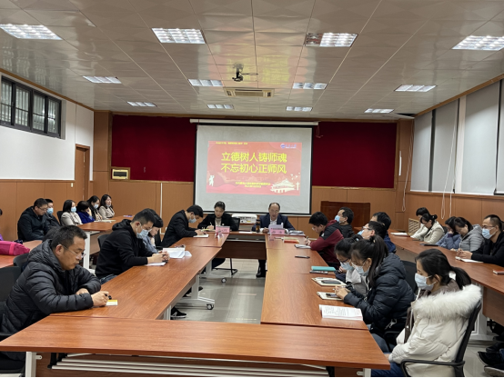 薛书记强调,师德师风建设是一项长期性且十分重要的工作,学院党委将建立健全师德师风长效规范体制,以高质量党建引领新时代师德师风建设,完善师德师风问题调查处置机制,强化师德师风警示教育,学院党政领导班子要做好教师思想动态研判、监督与整改,对发现的师德师风问题,要采取“零容忍”的坚决态度,从重从快,严肃处理。同时,班子成员要提升突发舆情应对处置能力,对突发舆情,要做到快速反应、及时发声、主动回应社会关切,及时做好舆论引导工作。教师个人要加强师德修养,严于律己,把教书育人和自我修养结合起来,增强遵守新时代教师职业行为准则的思想自觉和行动自觉,坚守为党育人、为国育才的初心,不断涵养高尚师德,做党和人民满意的“四有”好老师。
