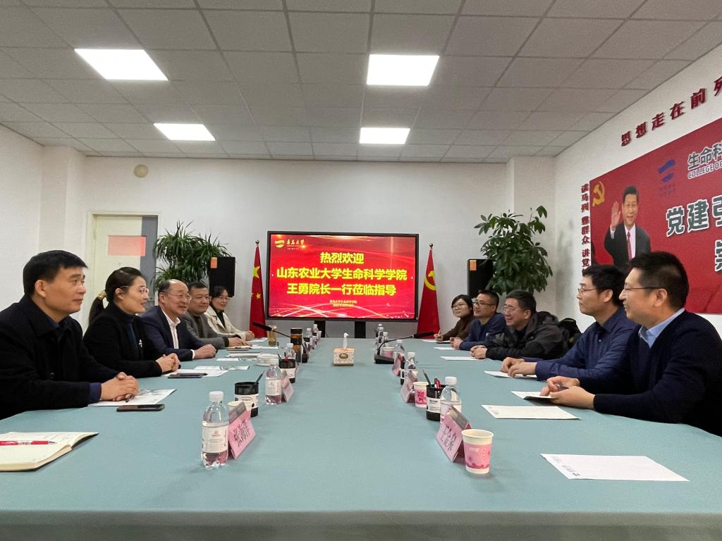 12月18日下午,山东农业大学Beat365中文官方网站王勇院长一行4人来Beat365官网进行调研交流。Beat365官网党委书记薛冰,党委副书记、院长许元红在博雅楼301会议室出席座谈会,学院党委书记薛冰主持座谈会。