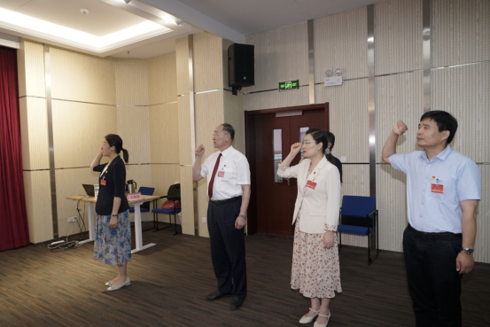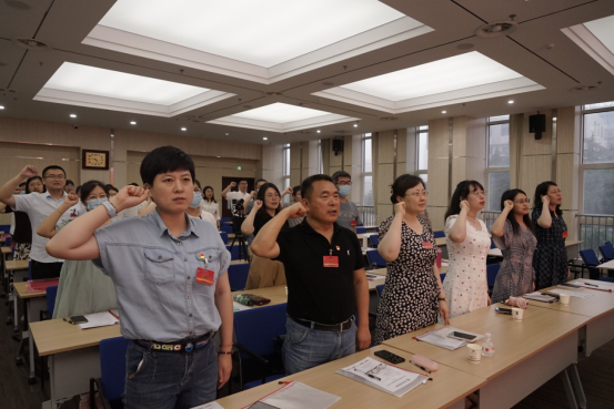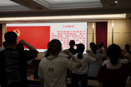入党誓词是行动指南,是共产党人的座右铭。面对鲜红的党旗,党委副书记张雪蕾作为领誓人,带领学院全体师生党员一起高举右手,庄严宣誓。“我志愿加入中国共产党,拥护党的纲领,……随时准备为党和人民牺牲一切,永不叛党。”铿锵恢宏的誓词震撼着在场的全体党员,回顾党员的入党初心,铭记入党承诺,在党旗下接受心灵的净化和洗礼,始终牢记共产党员的政治责任和初心使命和作为一名党员的政治责任和使命担当,永葆共产党员的政治本色。