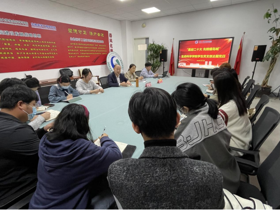 10月14日,Beat365中文官方网站学生党支部开展了“喜迎二十大,先锋耀岛城”主题党日。学院党委书记薛冰,党委副书记张雪蕾受邀出席活动,学生党支部党支部书记张海洋及部分党员代表现场参加,其他党员线上参加。