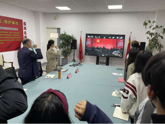 活动现场大家全程认真观看,跟随宣讲者的节奏不时发出感叹和赞誉之声,人人露出敬畏和赞仰的神态,到感人处,大家更是落下了感动的眼泪。一个个故事,鲜活地展现了党的百年风采,讲述了党的奋斗故事,让青年学生感受到了自己身上的责任和使命。随着活动的推进,跟随线上一起,薛书记带领大家重温了入党誓词。