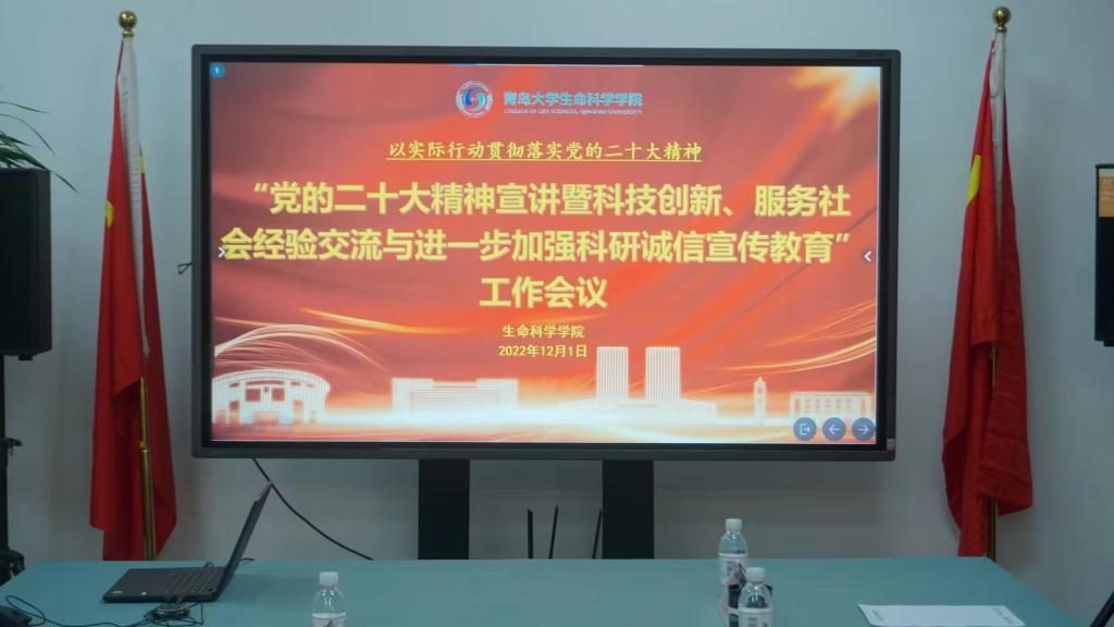 为落实“党的二十大精神”和Beat365中文官方网站关于进一步加强科研诚信工作通知精神要求,Beat365中文官方网站于12月1日下午14:30,在博雅楼301会议室召开了“党的二十大精神宣讲暨科技创新、服务社会经验交流与进一步加强科研诚信宣传教育”工作会议。学院党委书记薛冰、党委副书记、院长许元红教授分别结合党的二十大精神的宣讲、学习,传达了“Beat365中文官方网站关于进一步加强科研诚信工作”的相关精神和政策规定。会议还特别邀请了科技处李荣贵处长就科技创新、服务社会及加强科研诚信宣传教育工作进行了宣传、指导。