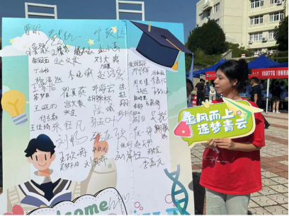 恰时相逢人欢喜,新生们在留下自己的签名后拍下与生科的第一张合影。新生们跨越山水来相逢。正式加入生科大家庭。