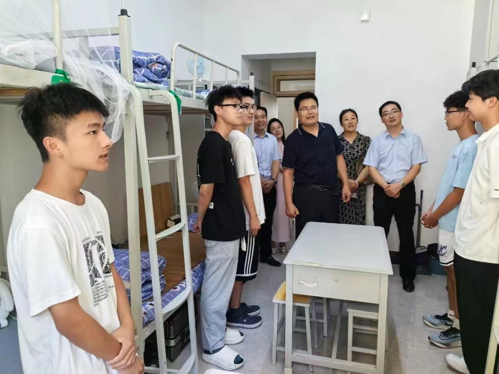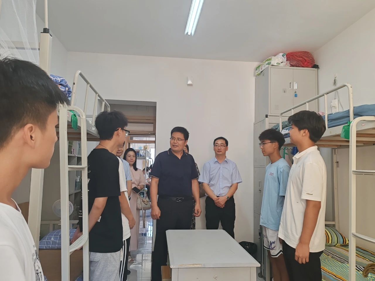为深入了解新生报到及适应情况,9月8日下午,Beat365中文官方网站党委常委、纪委书记徐大连、学生处副处长葛晓茜一行走访看望Beat365中文官方网站2024级新生宿舍,Beat365中文官方网站党委书记孙建华、党委副书记张雪蕾、副院长孙海新及院长助理丁晓腾及辅导员老师们陪同走访。