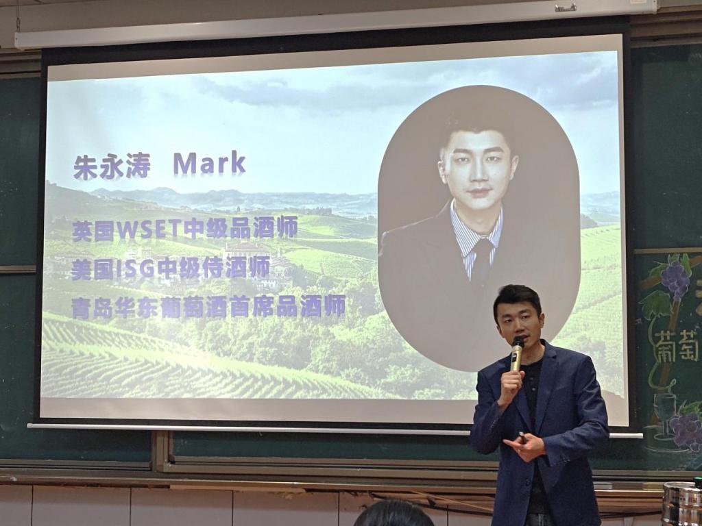 在宣讲会中,著名品酒师朱永涛老师为大家介绍了葡萄酒的起源、酿造方法、种类以及品尝葡萄酒所用的杯具,在朱永涛老师的指导下大家一起品尝了不同种类的葡萄酒。朱永涛老师的的讲述简洁明了,富有感染力,使同学们受益匪浅,对葡萄酒的相关知识有了更进一步的了解。最后朱永涛老师热烈邀请同学们进入百华东百利酒庄进行品酒参观。