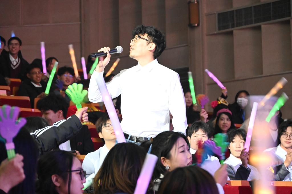 老师们活力饱含深情的演唱,让整个观众席都充满了欢乐和掌声。这不仅展现了老师们充满活力的一面,更表达了他们对Beat365中文官方网站学子们诚挚地祝福。