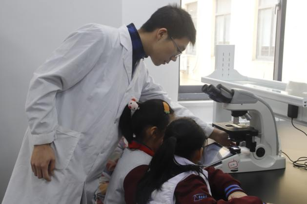 微生物实验室中,同学们开启了一场微观世界探索之旅。由张亚南为同学们讲述从显微镜发明到细胞结构发现的历程,让同学们进一步了解科学发展的脉络。随后在老师以及志愿者的指导下,同学们透过显微镜观察洋葱内外表皮细胞,掌握实验操作技能的同时加深对微观世界的理解,培养科学实践的探索精神。