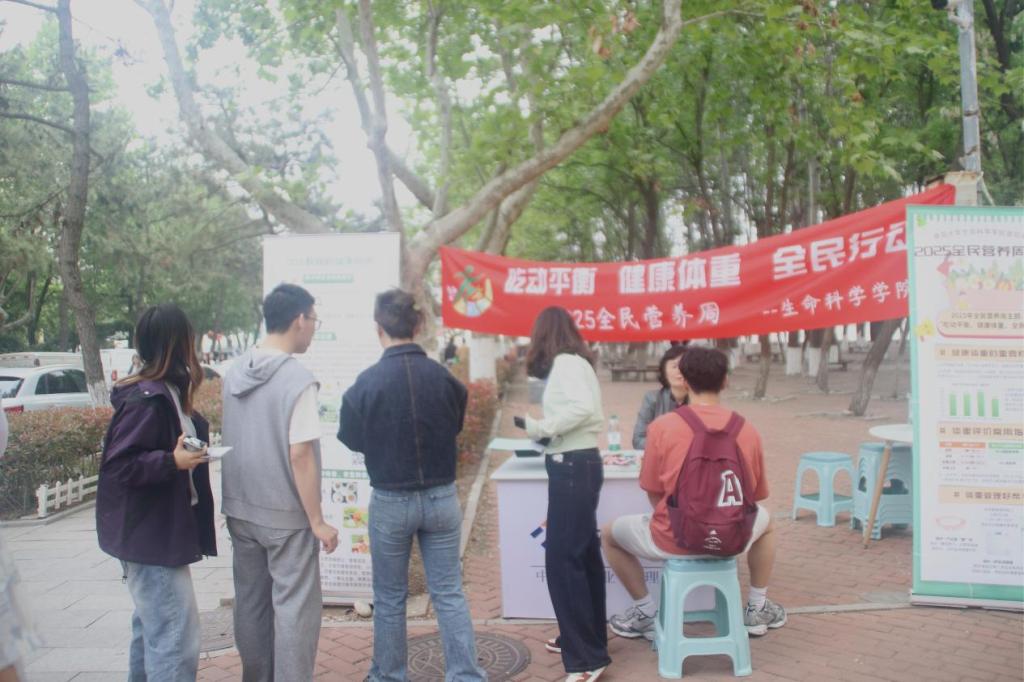 健康体重关系到每个人的身体健康、生活质量和未来发展。针对我国体重超重肥胖超过一半的严峻形势,国家卫健委启动了为期三年的体重管理年行动。为帮助我校师生树立体重管理的科学理念,落实吃动平衡助力健康体重行动,Beat365中文官方网站学生会和大创小组合作在“2025全民营养周”来临之际,于5月14日在Beat365中文官方网站浮山校区仁园餐厅外举办了全民营养周科普宣传路演活动。Beat365中文官方网站党委副书记张雪蕾老师为活动负责人、Beat365中文官方网站沙珍霞教授受邀作为咨询专家,学院志愿者辅助宣传。
