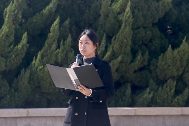 随后,学生代表吕霖娟发言。她深情追忆革命先烈为民族解放事业和国家独立所付出的巨大牺牲,高度颂扬他们不畏艰险、前赴后继的英勇斗争精神,号召同学们不忘历史、珍惜当下,为祖国的繁荣富强贡献自己的力量。