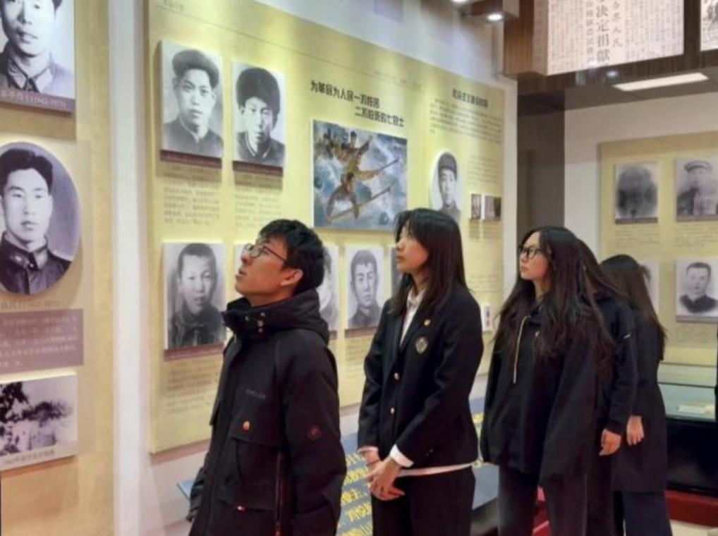 最后,在老师带领下,一行人前往革命烈士纪念堂,进入红色主题展厅,了解英雄事迹,从革命战争的战斗岁月到和平年代的奉献故事,这些事迹都深深触动着大家的心弦。展厅内的照片和文物,展现了先烈们的英勇瞬间。先烈舍小家为大家的奉献精神和英勇奋斗精神,使大家内心深受触动。