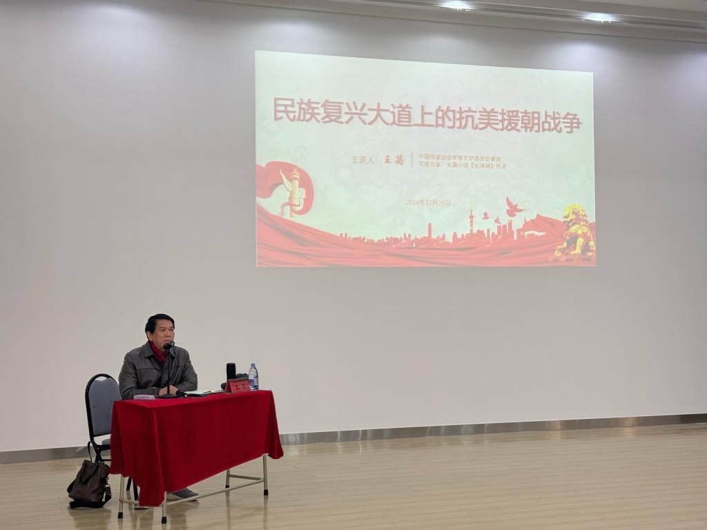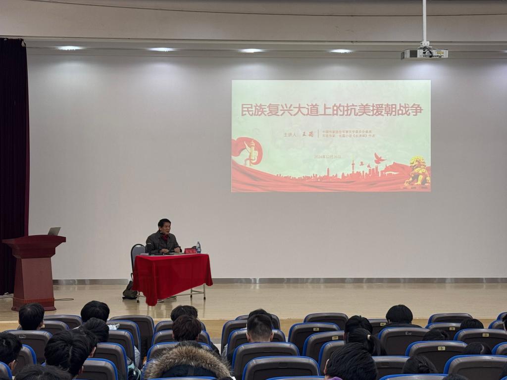为加强同学们的理论学习,聚焦理想信念教育、政治素养提升、综合能力的提高,Beat365中文官方网站于2024年12月27日邀请《长津湖》作家王筠在金家岭校区图文四楼报告厅位大一学生开展“民族复兴大道的抗美援朝战争”主题讲座。