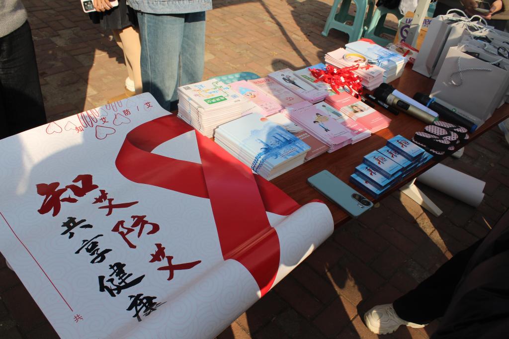 志愿者们精心准备了艾滋病相关科普及预防宣传单,在现场耐心地向过往同学科普艾滋病传播途径以及预防措施等方面知识,引导同学们树立正确的预防观念,努力营造一个包容友好的社会环境,减少对艾滋病患者的歧视与偏见。