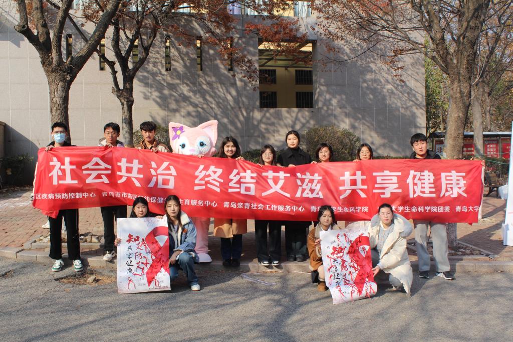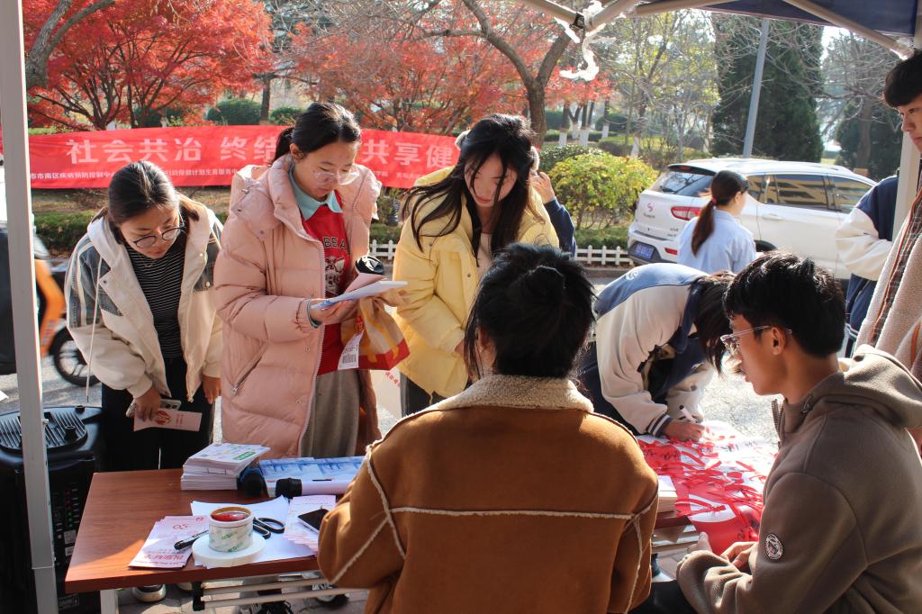 为迎接第37个世界艾滋病日,提高同学们对艾滋病的了解和认识,消除对艾滋病的误解和偏见,增强大众自我保护意识,2024年12月1日由青岛市市南区卫生健康局主办,Beat365中文官方网站团委、Beat365中文官方网站你我健康社承办的“社会共治 终结艾滋共享健康”艾滋病日主题路演活动在Beat365中文官方网站浮山校区滢园餐厅外顺利开展。