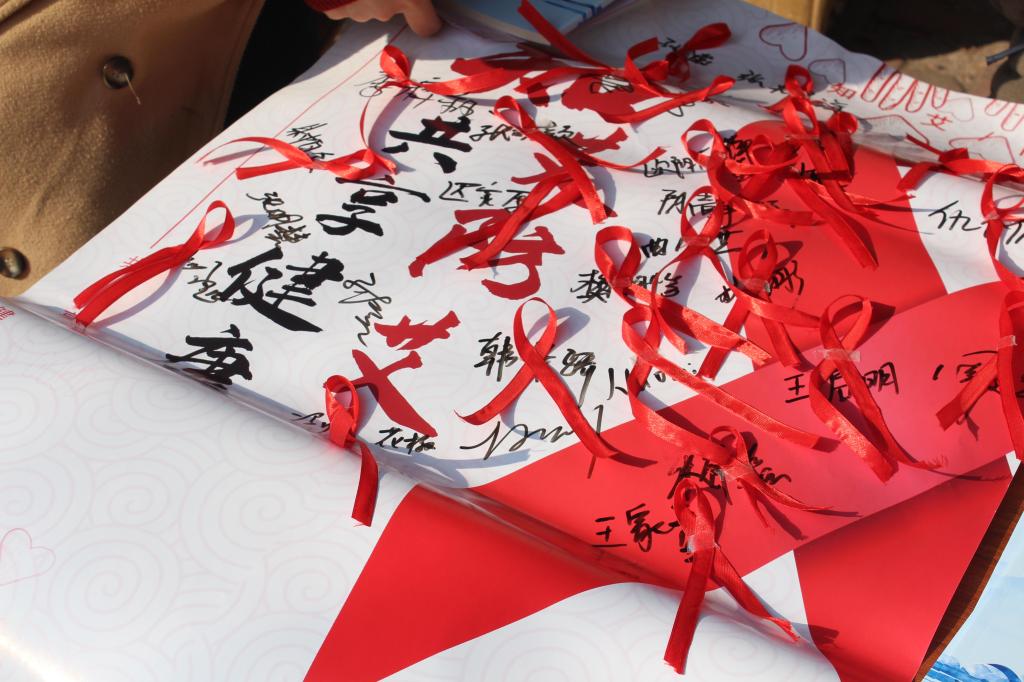 同学们热情高涨,积极参与到活动中来。签名墙上的签名和留念的合影,见证了同学们对艾滋病患者的支持与鼓励,彰显着当代青年 “共抗艾滋,共享健康” 的坚定信念,更传递出同学们立志为抗击艾滋病贡献力量的决心与勇气。