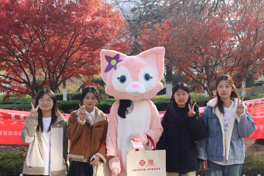 活动中,可爱的玩偶玲娜贝儿成为了一道独特的风景线。同学们纷纷与她热烈拥抱,这一个个温暖的拥抱,表达了同学们对活动的认可与支持,希望全校师生共同努力,形成抵御艾滋病的强大合力,为建设健康社会贡献力量。