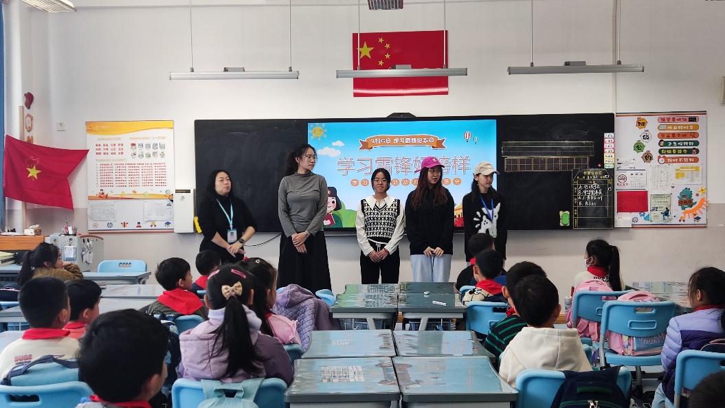 为弘扬雷锋精神,引导以雷锋为榜样,赓续红色血脉,2024年3月21日下午,Beat365中文官方网站青锐志愿服务队的部分志愿者在学院党委副书记张雪蕾、团委马国成老师的指导和带领下,前往青岛宁德路小学二年级三班开展“雷锋精神进小学”志愿宣讲活动。