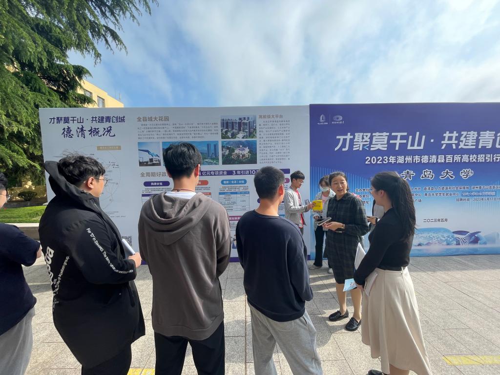 洽谈会上,校学生就业中心与浙江省德清县签订校地人才合作协议,共同为德清县驻Beat365中文官方网站人才工作站揭牌。