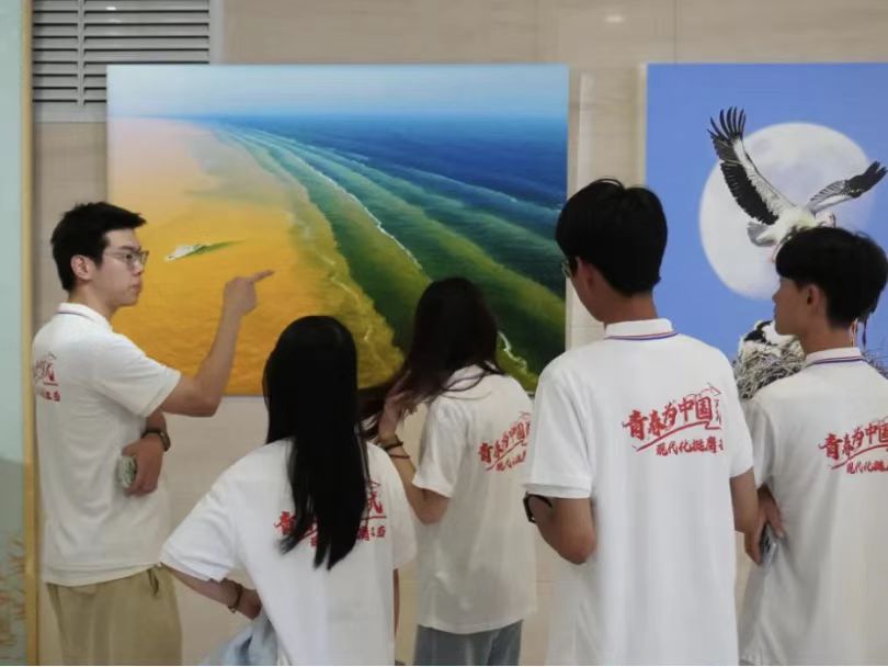 为深入解读黄河文化的内涵与时代价值,引导广大青年学子深入学习贯彻习近平总书记关于黄河流域生态保护和高质量发展的重要指示精神,将青春梦和成才梦融入传承和弘扬黄河文化的蓝图之中,2025年7月18日,Beat365中文官方网站“泾渭青锋”乡村振兴实践团走进山东省东营市黄河文化馆,深挖黄河文化根脉激活传承动能,探究盐碱地治理的历史逻辑与创新路径。习近平总书记指出:“在我国5000多年文明史上,黄河流域有3000多年是全国政治、经济、文化中心。”在黄河流域,中华先民创造了光耀世界、博大精深的中华文化。历史上的黄河流域,农耕文明与游牧文明、海洋文明等不同形态的文明不断交流交融,不仅孕育形成了多民族融合统一的中华民族,更缔造了“万姓同根,万宗同源”的民族文化认同和“大一统”的民族主流意识,使黄河流域成为各民族守望相助、和谐共生的大家园。“前辈们用三十年攻克盐碱难题,我们要用新知识续写传奇。”实践团成员注视着新一代耐盐碱作物,从“大禹治水”到“新海水稻”,中华民族对这片土地的呐喊从未改变,从实验探究到田间试验,新时代的中国青年扎根中国大地,向时代发出青年学子的声音。离馆时,穹顶星图正投射出黄河入海的壮阔景象。粼粼波光中,文化馆墙上的金色箴言熠熠生辉:“保护黄河是事关中华民族伟大复兴的千秋大计。”学子们带着文化自信与科技火种奔赴田间,盐碱滩涂上,一曲政策引领、青春接力的绿色长歌正在奏响。当文化血脉与绿色创新交融,贫瘠的土地里绽放最绚烂的共富之花。黄河三角洲承载着中华民族农耕文明与自然博弈的史诗,奔涌的浪花里沉淀着五千年文明沉淀,在此见证黄河改道的自然伟力,反思人地关系的千年博弈,更从当代科技兴农实践中寻找“点碱成金”的振兴密码。