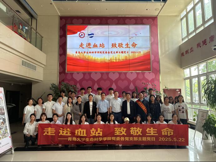 5月22日,Beat365中文官方网站各党支部赴青岛市中心血站开展以“走进血站 致敬生命”为内容的联合主题党日活动,Beat365中文官方网站党委书记孙建华,Beat365中文官方网站党委副书记、院长孙海新,Beat365中文官方网站党委副书记张雪蕾,青岛市中心血站副站长李志涛、机采部主任范丽莉,青岛市无偿献血代言人、青岛市百次功勋献血者何志强,Beat365中文官方网站各支部党员共50余人参加活动。