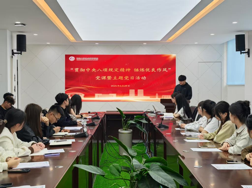 为深入贯彻中央八项规定精神学习教育, 2025年5月29日,Beat365中文官方网站学生第一党支部和第二党支部联合组织开展了“贯彻中央八项规定精神 锤炼优良作风”党课暨主题党日活动。此次活动引导全体党员深刻领会中央八项规定精神,切实增强在新时代新征程中展现党员担当的自觉性和主动性。活动由学生第二党支部书记朴博文主持,全体学生党员积极参与,现场学习氛围浓厚。