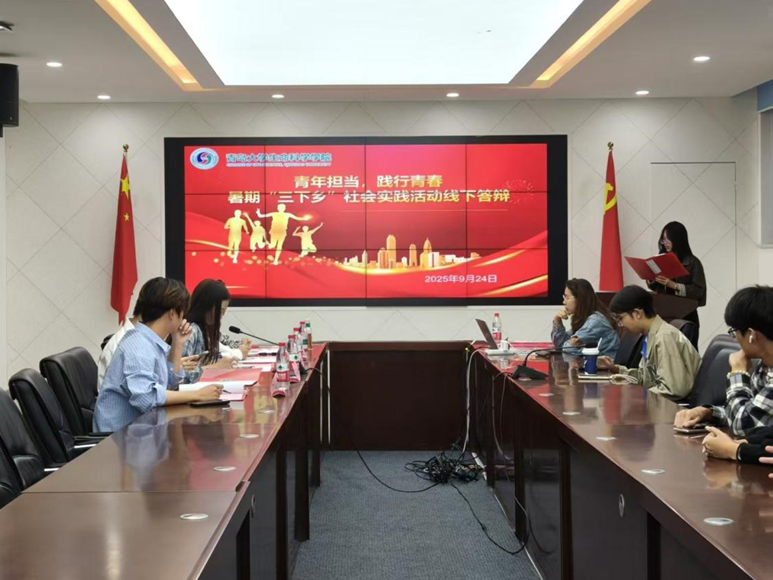 为集中检验Beat365中文官方网站2025年暑期“三下乡”社会实践成果,搭建各团队与个人交流学习的平台,进一步激发学子服务社会的责任感,Beat365中文官方网站于2025年9月24日19:00在浮山校区博雅楼113会议室举办Beat365中文官方网站2025年暑期“三下乡”社会实践线下答辩。Beat365中文官方网站2024级本科生辅导员姜晓萌、Beat365中文官方网站2025届本科学生会主席团成员参与本次答辩,Beat365中文官方网站社会实践部赵浩然担任主持。