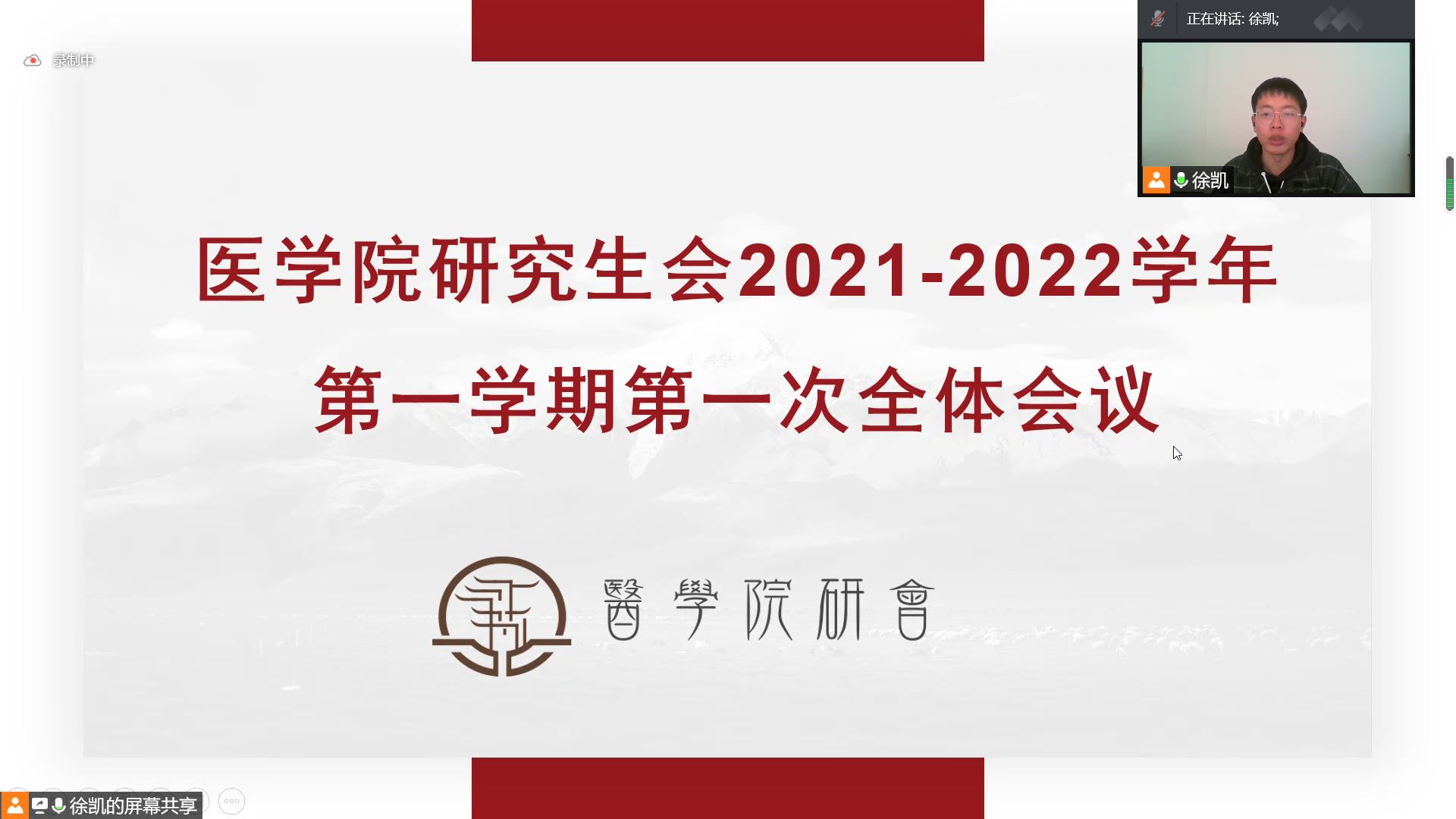 2021年11月9日下午四点,万象城awc官网登录入口于线上召开本学期第一次研究生会例会、万象城awc官网登录入口第一次研究生代表大会暨万象城awc官网登录入口全体学生干部培训大会,学院辅导员胡豪、黄雪梅,研究生会全体成员以及全院班级干部参加了此次会议,会议由研究生会主席徐凯主持。